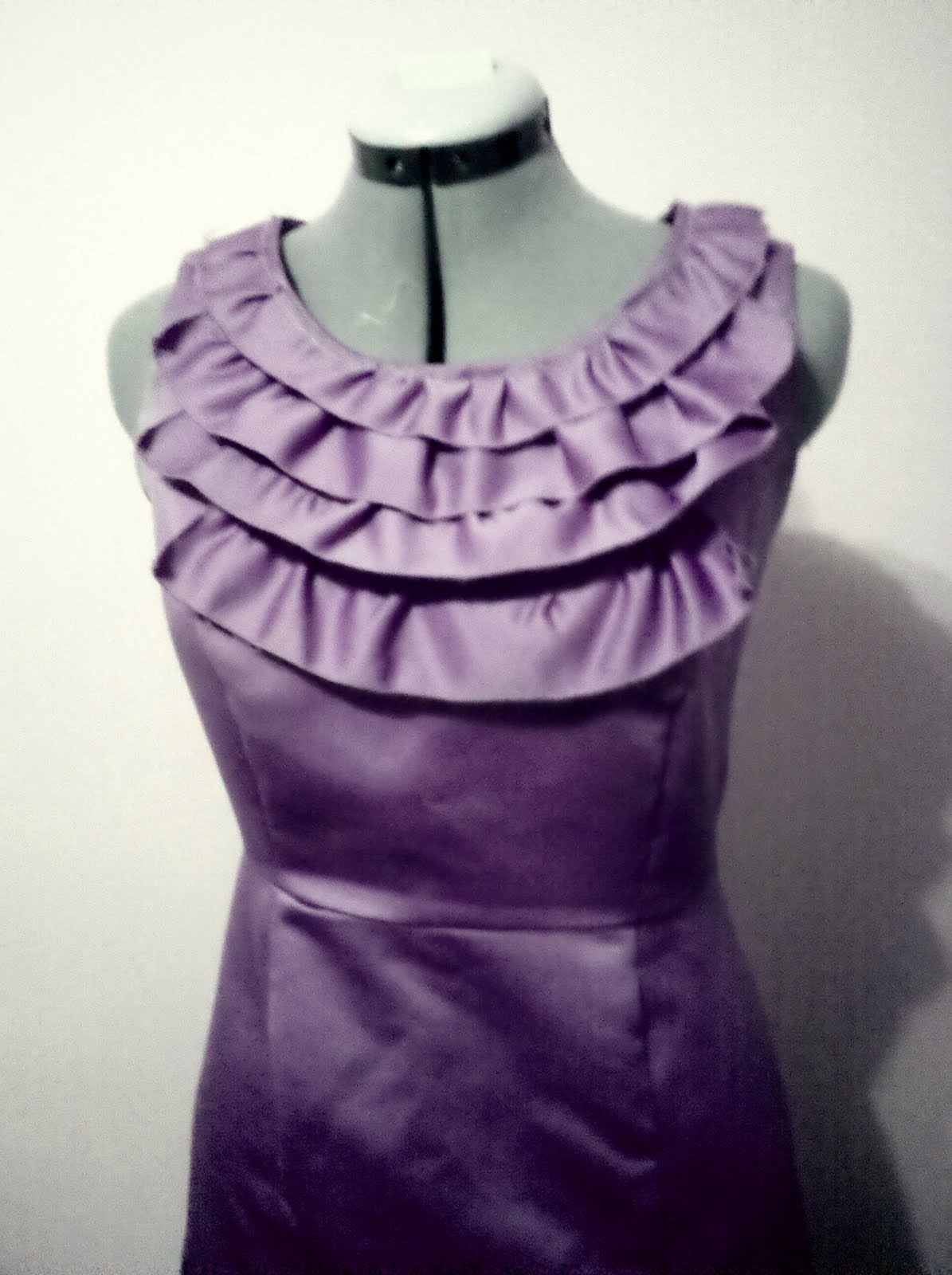 I used a purple satin that I bought during a trip to Mary Jo's. It was definitely the most luxurious fabric I had ever used at that point. It was amazing the difference the quality of fabric has when you are sewing. Everything just seemed to go so much smoother.